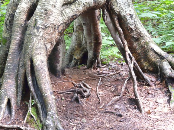 a really unusual above-ground root system – kind of looks like some kind of camping structure with a little campfire in the middle…