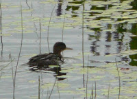 Later we saw a loon chick on another mountain lake. His parents were nowhere to be found, but I’m guessing they were hidden in the reeds, watching junior learn to dive.