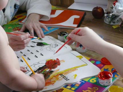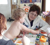 Having recently discovered crayons and paints, Kelsey spent the day of our Christmas celebration coaxing various family members to color with her. “Oma! Oma! Color!” She ran from one adult to another, her eyes sparkling with the secret that she was about to jump in your lap, suddenly dropping into your arms then as quickly hopping up to “drop in” on another