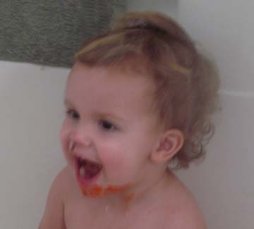 After the masterpieces had been completed and set on the counter to dry it was off to the tub for Kelsey. A little more play, an Elmo’s World video, and Miss Kelsey was rubbing her eyes and trying not to fall asleep. It was time for the visitors to head for home.