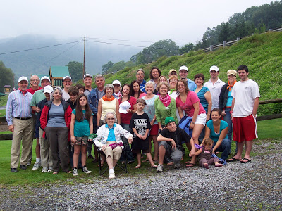 Last weekend it was a picnic with my sibs, their kids, my kids, and of course the granddaughter. This past weekend it was a family reunion of a different sort: Friend Charlie’s annual “Crary Camp.” Having been assured that his family is as crazy – if not crazier – than mine, I felt it would be no problem fitting in with the clan. And it was…..crazy and no problem. While many of the relatives stayed in adjacent cabins, Charlie and I and some of the others lodged at local campgrounds. We ate, laughed, looked at pictures, participated in a “memorial” for Uncle Joe, laughed, rode bikes, rafted, told stories, laughed, played Scrabble, debated, laughed, and generally had a great time. I did feel right at home, feeling comfortable enough to let loose with my “Benton humor.” They fired straight back at me…how great is that? There are photos and a brief video of the rafters on my Picasa site and, um, Judy…..here are my “test” answers. Back row: Richard (Worzel, spouse of Jacky), Dave (Crary, spouse Joan and children Meg, Ben, and Emily not present), Adrian (spouse of Sandy Worzel), Bill (Worzel, spouse of Lee), Doug (spouse of Judy Crary), Wick (Flagg, spouse of Lorraine), Bunny (Flagg, spouse of Tom), Jim (Flagg), Josh (Flagg, son of Jim), Charlie (Crary, children Shannon, Steve, Jonathan, and Elaina not present), Kit (Worzel, son of Richard and Jacky), Jason (son of Judy and Doug), Kathryn (daughter of Richard and Jacky), Nathan (son of Morgan)