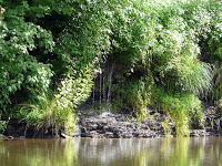 Last weekend was the annual Crary Camp in Gaines, Pa. The group was small this year, but we had great fun. It’s a little scary to find a crew as crazy as my native clan, but nice to feel so comfortable being with them. We biked the rail trail along a meandering stream and stumbled on what I believe is a timber rattlesnake, sunning just at the edge of the trail. A few minutes later we saw these three deer splashing and playing in the stream. The butterfly – a red admiral – didn’t want to open his wings long enough for me to capture his beautiful orange-red markings, but I got a decent picture anyway. The cascade across the river from camp was so intriguing I had to include it as well. Looking forward to camp next year – and our trip to Michigan next week!