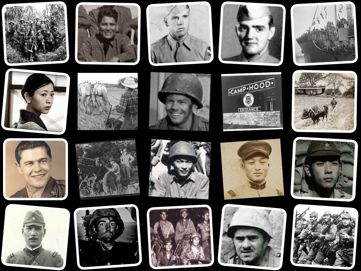 Today’s post: a collage of images I use to represent my characters, Leo, Dooley, Woody, Cal, Sergeant Ryan, Lt. Inoue, Kaito, Tadashi, Sachiko, Harry, Russo, and Johnson, and their surroundings. Can you spot the protagonists? Antagonists? There are two of each.