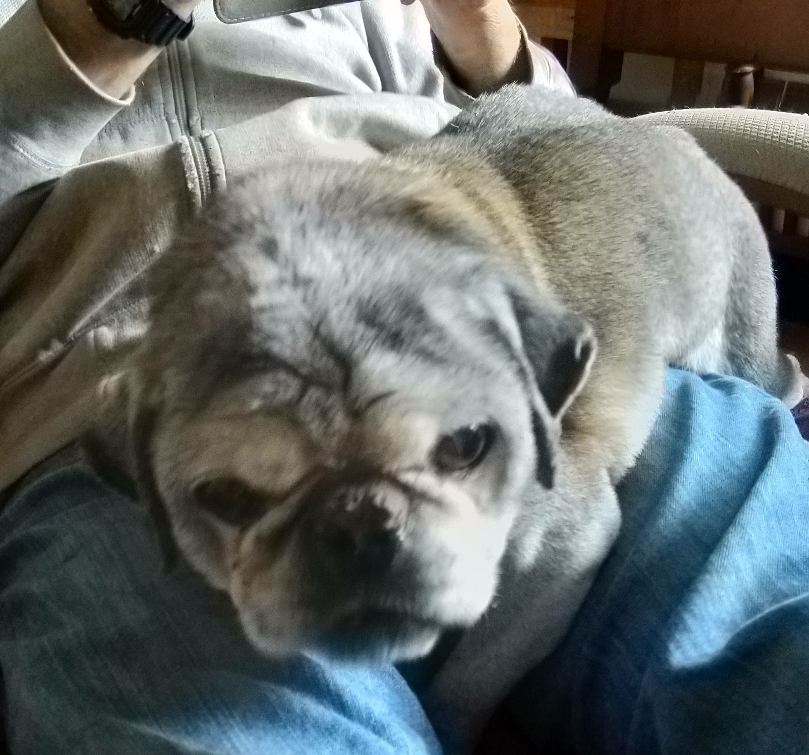 We see them age before our eyes, each day they look noticeably older than the day before. There are lumps and bumps that weren’t there before. They hack and snort and fart as if desperately trying to expel the oldness. Their steps are slow and measured. They need steps and ramps to get on the bed or sofa. Kody can no longer climb at all and Charlie dutifully carries him almost everywhere.